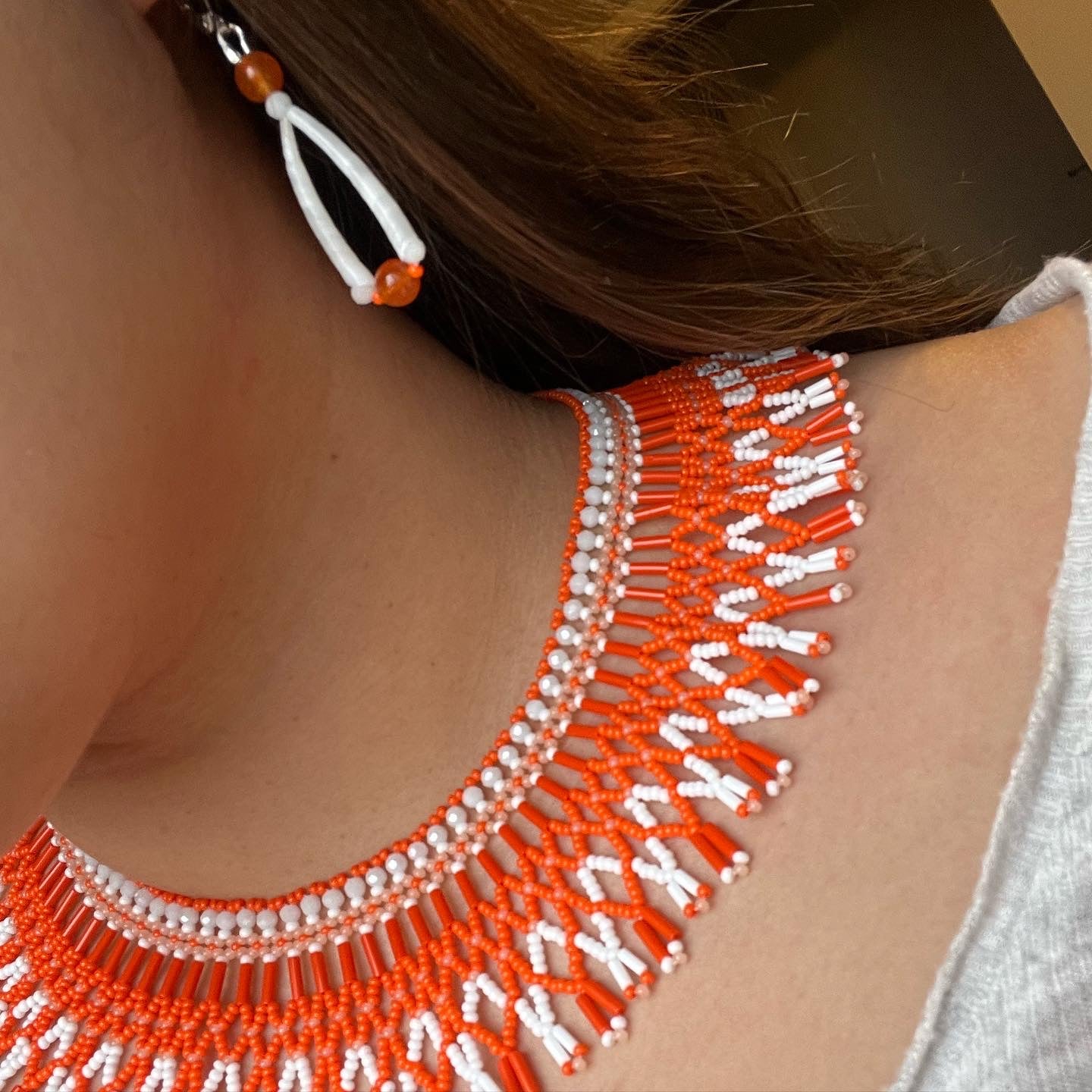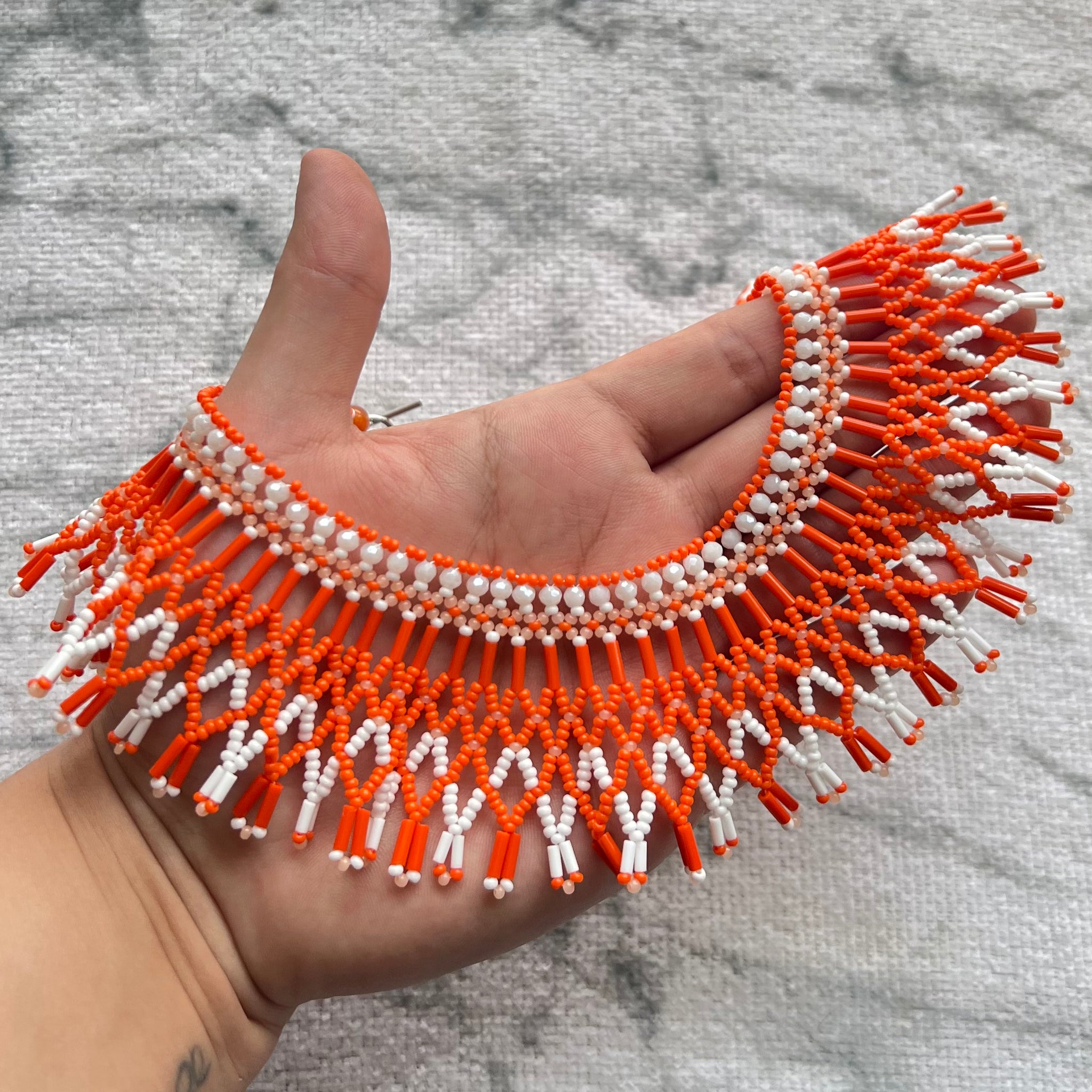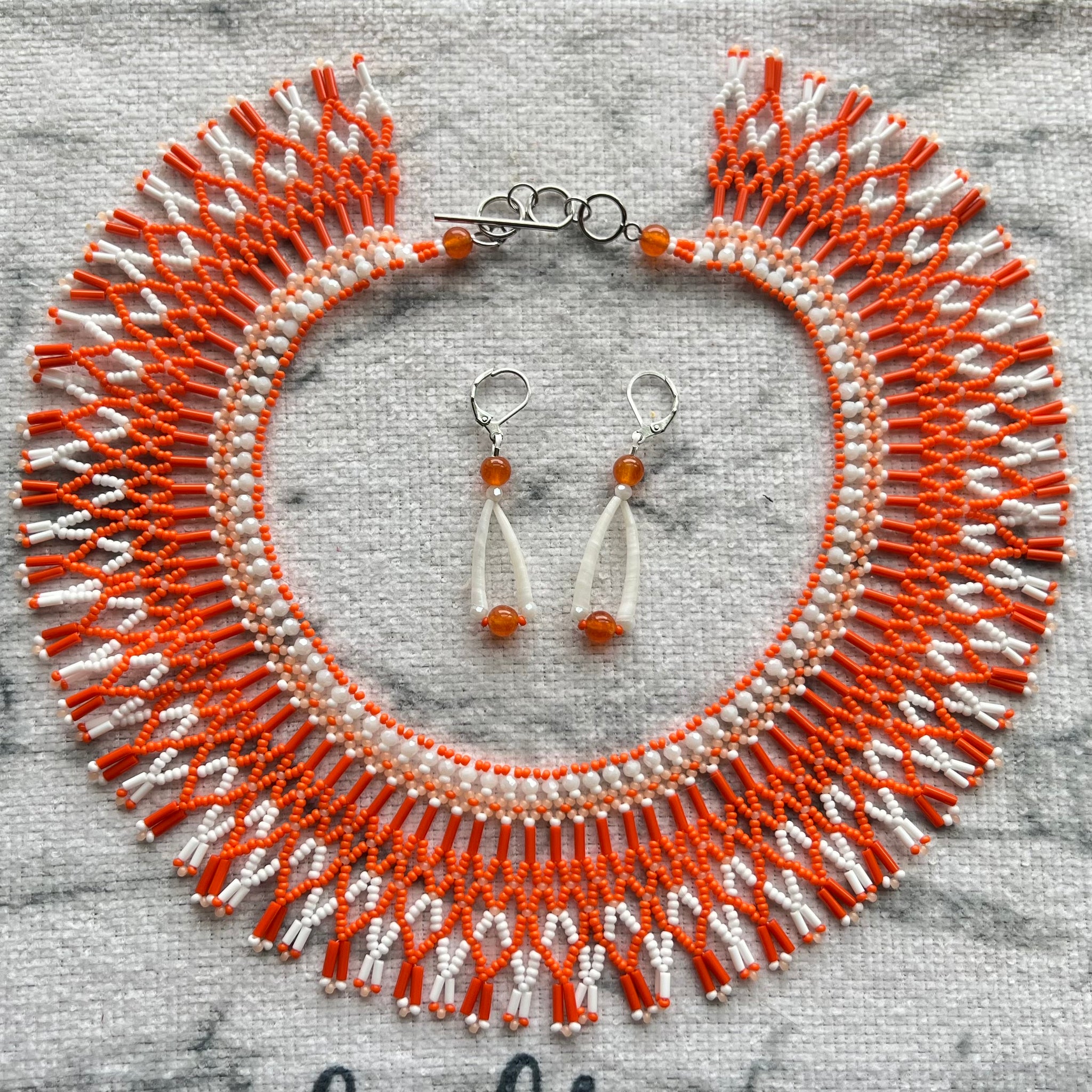 This necklace is 14.5-15.5 inches long (I can add length if needed! Just message me on Instagram or Facebook). It is made with nickel-free toggle clasps, size 11 seed and toho beads, 9 mm bugle beads, and glass czech beads.